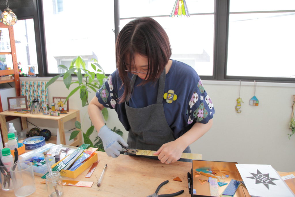 1年ほどステンドグラス漬けの生活を続け、貯金も尽きてきた頃に再び就職する。この時分に結婚し長女出産後も仕事を続けたが、時短勤務が無くなる3歳を過ぎると、仕事と子育ての両立の悩みが立ちはだかり、退職を決断した。働きたい、家族との時間も大切にしたい、好きなこともしたい……。自分に何ができるかを突き詰めて考えた。悩む中で思い浮かんだのは、ステンドグラスに没頭していた時間だった。「ステンドグラス教室を開きたい」。そう思った。
