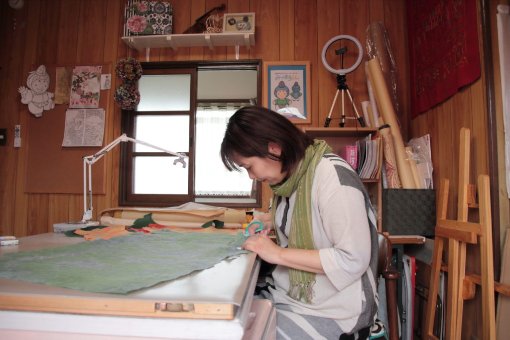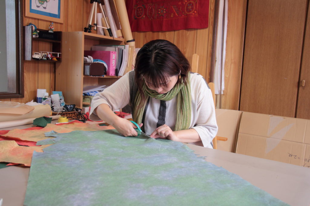 そんななかで、辻表具店を訪問することになる。学生時代に日本画を専攻していた高橋さんと仕事で日本画の修復も手がけることがある辻さんとは話が合った。辻さんという協力者を得たことで、高橋さんの制作活動は広がっていく。今、高橋さんは表具師である辻さんと、辻さんを通じて知り合った建具師の方とともにmajikirie(まじきりえ)というブランドを立ち上げている。「まじきりえ」は、建具であるふすまなどの「間仕切り」と「切り絵」を組み合わせた造語である。