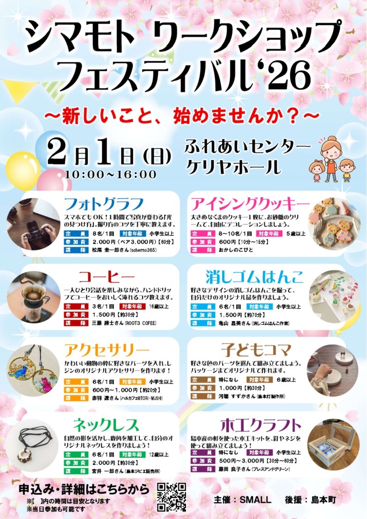 シマモトワークショップフェスティバル2026 開催決定! 「新しいこと、始めませんか?」 こんにちは、SMALLです! 島本町で活躍するクリエイターが一堂に会する、体験型のワークショップイベントを開催します! クラフトや…
