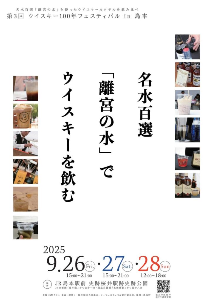 今回のテーマはその水を使用して副材料を作り、このフェスティバルオリジナルのウイスキーカクテルを創作、提供しいたします。ここ島本町でしか味わえないウイスキーカクテルを飲み比べていただき、「島本町」を体験してください。
